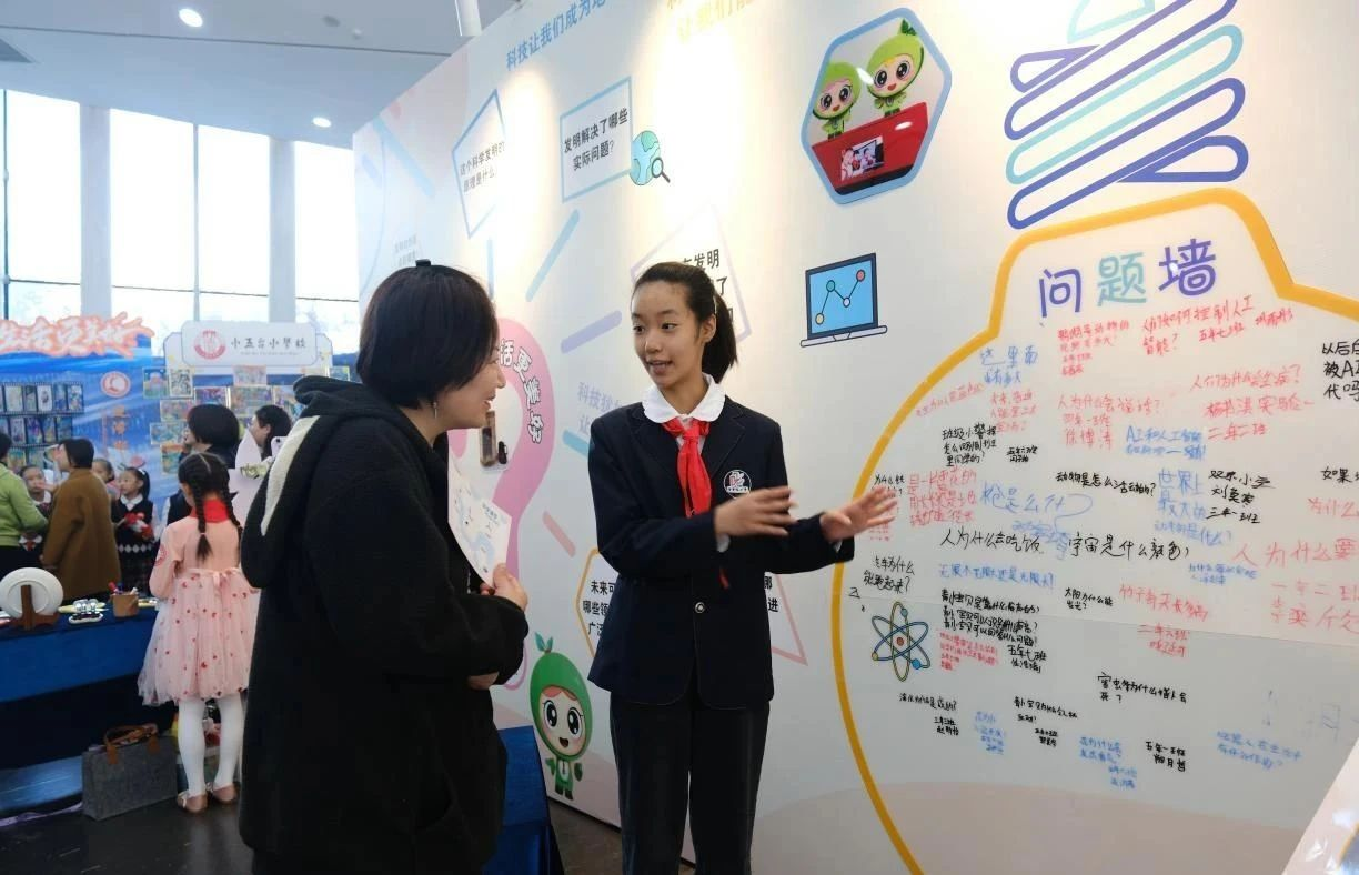 同时,青年路小学设置“问题墙”,方便同学们运用提问方法,随时把产生的疑问写在墙上,随后老师们带领他们使用科学方法梳理总结,提取有价值的问题进行下一步研究、发明和创造,努力形成有效闭环。