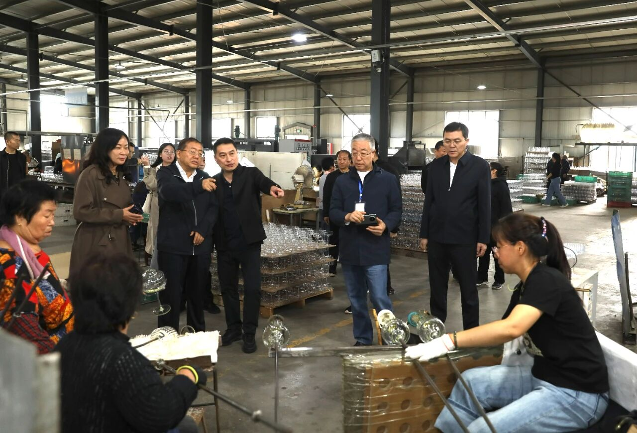 在山西宏艺玻璃器皿有限责任公司观摩调研。(李庆峰 摄)