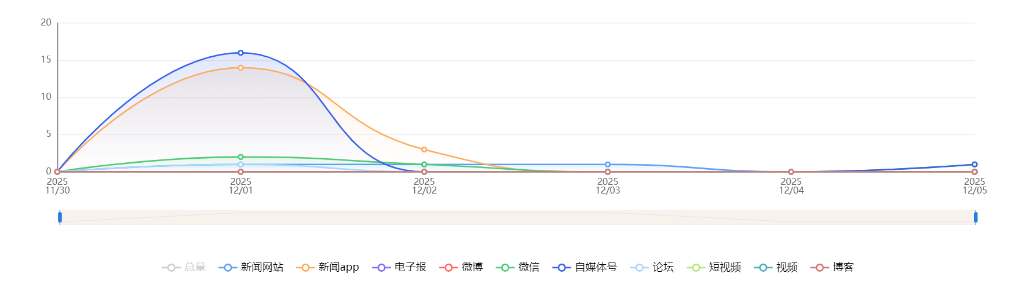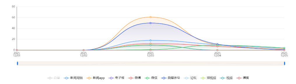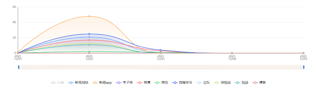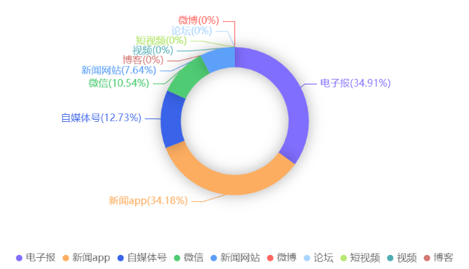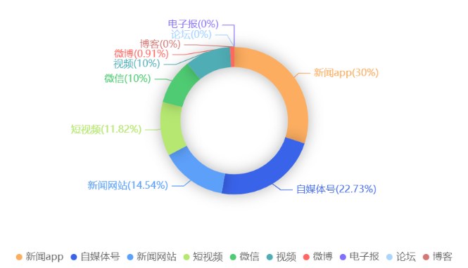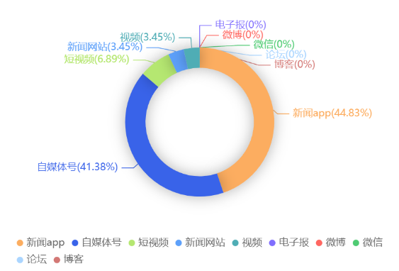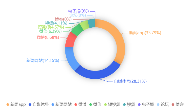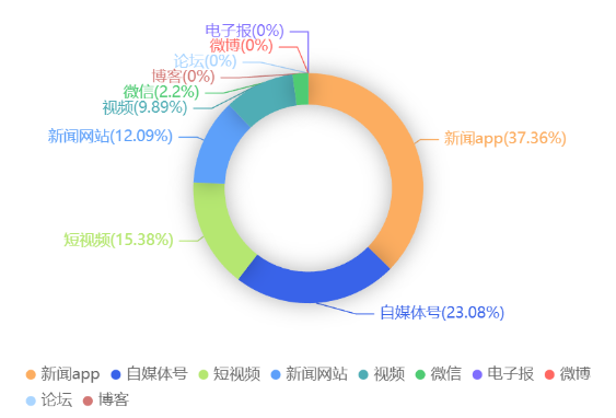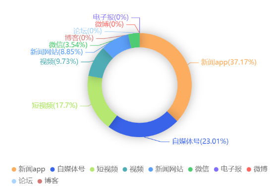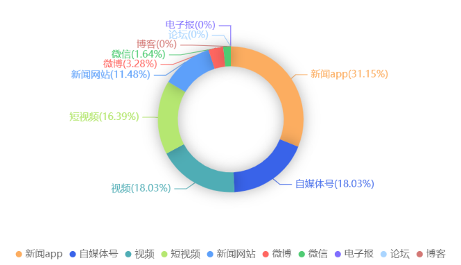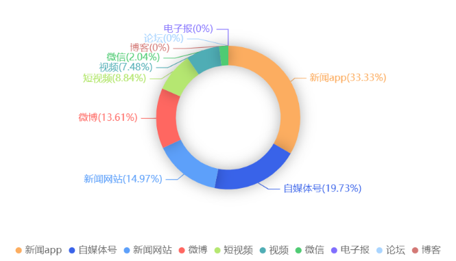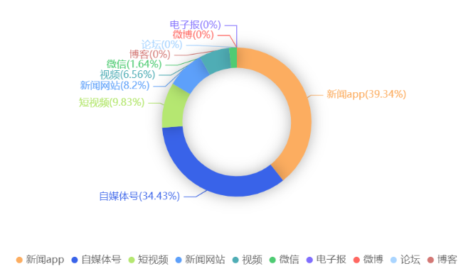 截至目前,该文章在互联网上传播总量共61篇。各信源的信息发布情况中,新闻app占比最大,其次是自媒体号和视频。(数据来源:新华睿思·数媒智慧分析平台)