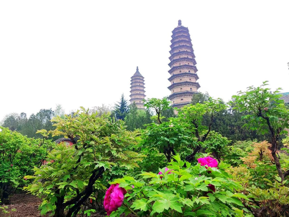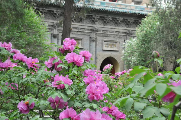 永祚寺,是全国重点文物保护单位,也是山西省重要的文物景点。这里不仅有“凌霄双塔”、无梁建筑大雄宝殿、《宝贤堂集古法帖》等,更有以明代牡丹“紫霞仙”为代表的八千余株各色牡丹珍品。春夏交接之际,花团锦簇,争奇斗艳,成为太原一大胜景。