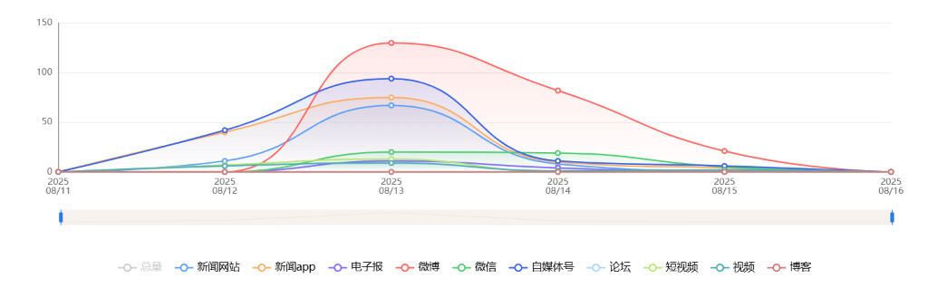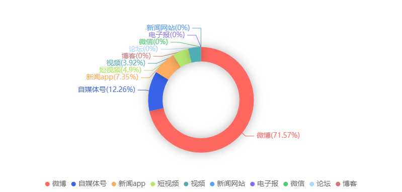 截至目前,该文章在互联网上传播总量共204篇。各信源的信息发布情况中,微博占比最大,其次是自媒体号。(数据来源:新华睿思·数媒智慧分析平台)