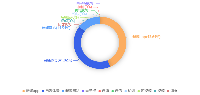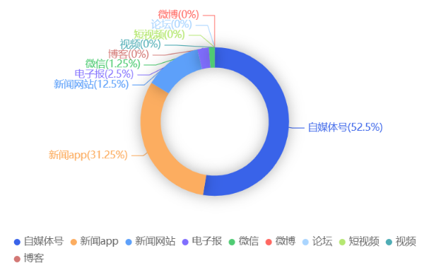 截至目前,该文章在互联网上传播总量共55篇。各信源的信息发布情况中,新闻app占比最大,其次是自媒体号。(数据来源:新华睿思·数媒智慧分析平台)