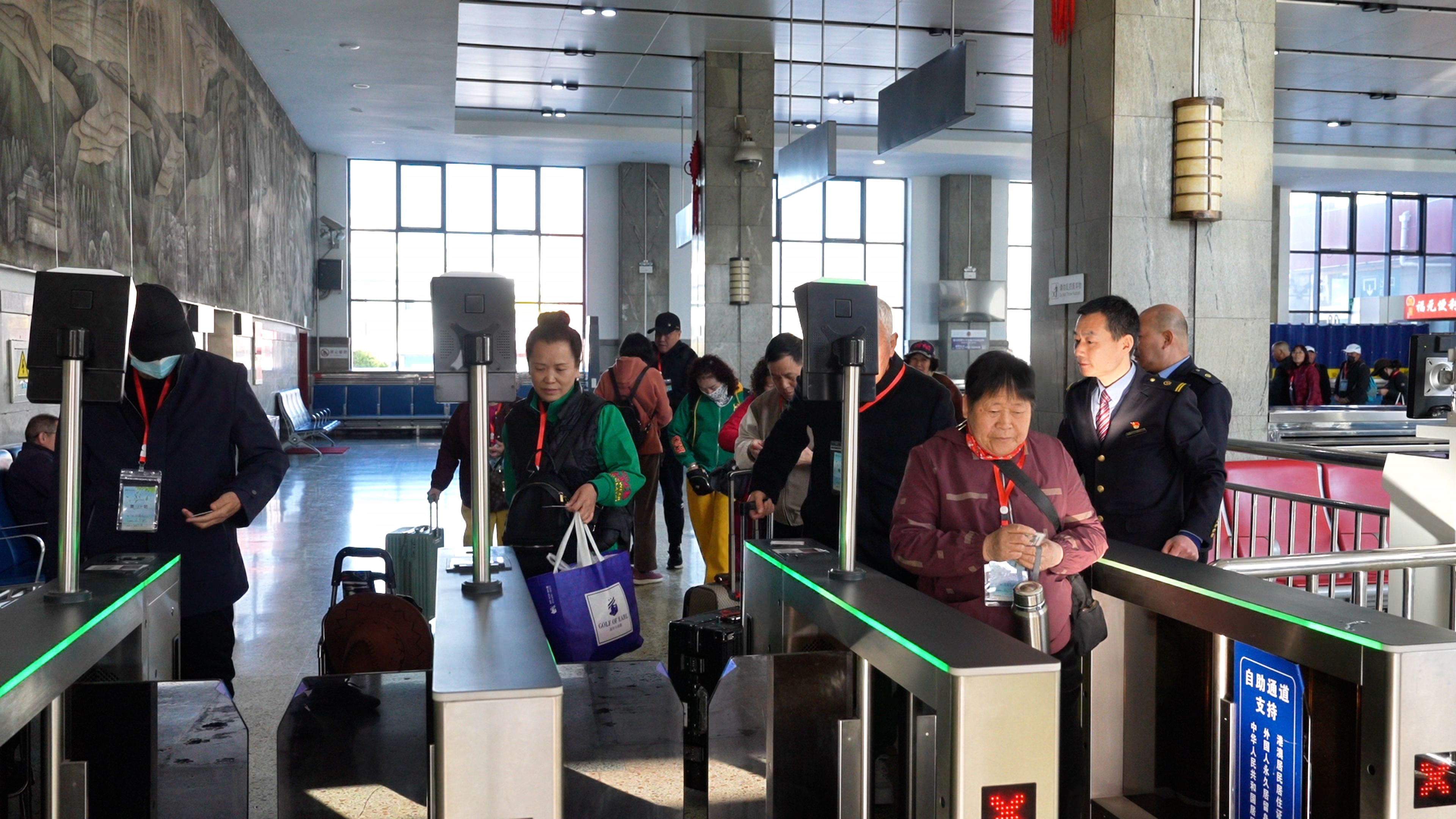“为了更好地服务银发旅客,让每一位旅客都能享受‘坐着火车漫游中国’的幸福时光,临汾火车站专门开辟绿色通道,增加两个安检进站通道,安排工作人员帮助老人搬运行李、搀扶老人上车。”侯马车务段(临汾站)客运值班员黄桢说,“开通银发旅游列车是我们铁路部门积极响应国家发展银发经济、关注老年人福祉的重要举措,也希望通过这次列车的开行,进一步推动临汾文旅事业繁荣发展,同时为银发经济的发展贡献铁路力量。”