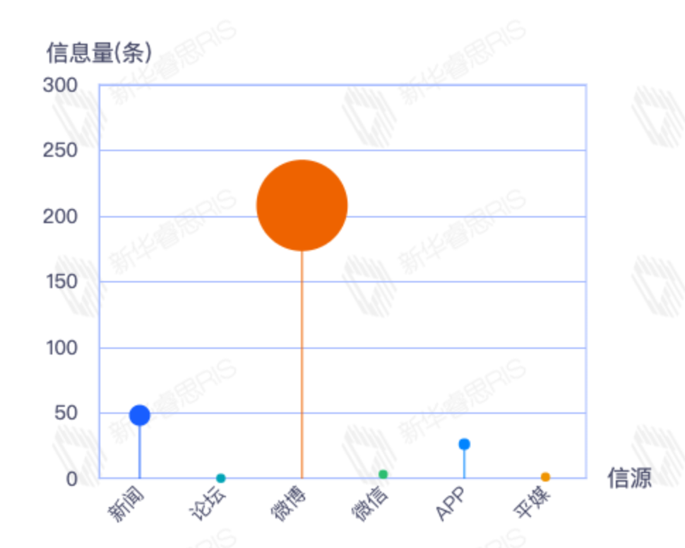 截至目前,该文章在互联网上传播总量294篇。其中12月18日是传播的高峰期,共传播205篇文章。各信源的信息发布情况中,微博信息占比最大,其次是新闻和app,信息量分别为208、48、26,占比分别为72.73%、16.78%、9.09%。(数据来源:新华睿思数据云图分析平台)