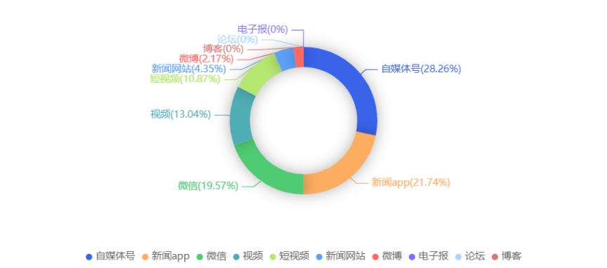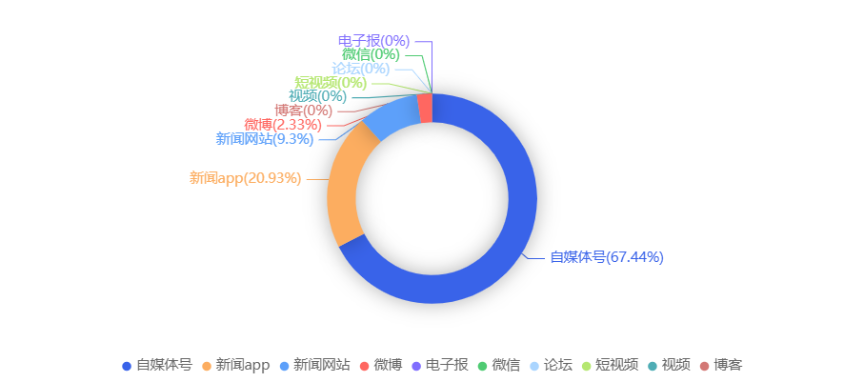 截至目前,该文章在互联网上传播总量共46篇。各信源的信息发布情况中,自媒体号占比最大,其次是新闻app。(数据来源:新华睿思·数媒智慧分析平台)