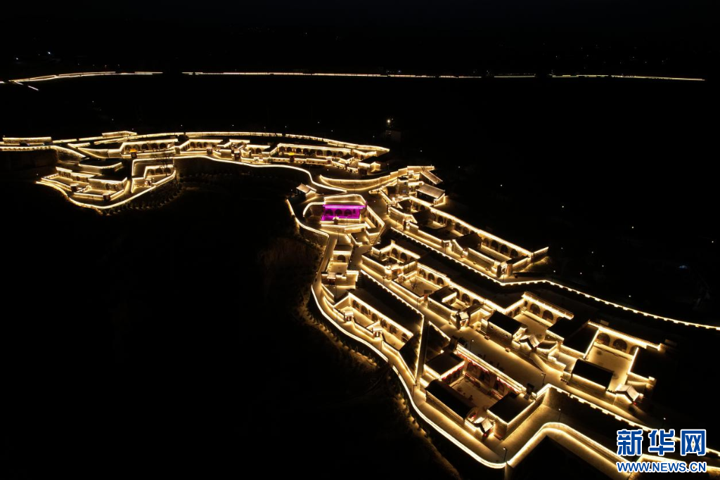 夜晚亮灯的彩家庄村,犹如一只展翅的凤凰。新华网 发(陈慧忠 摄)