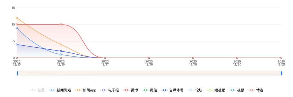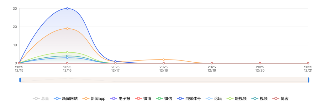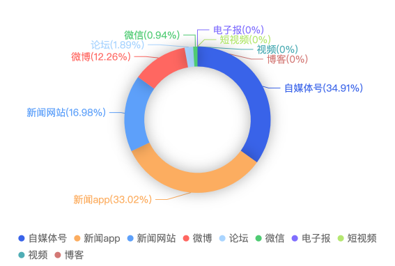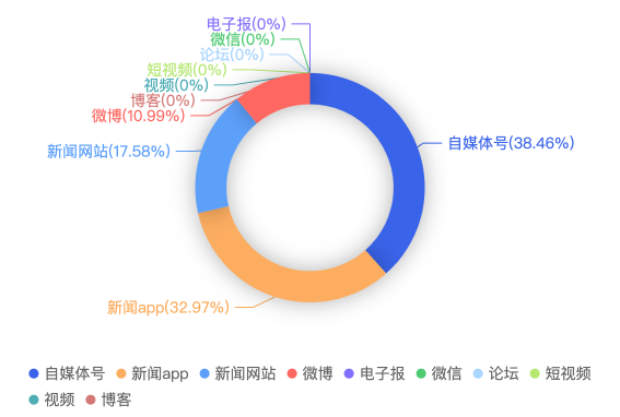 截至目前,该文章在互联网上传播总量共11篇。各信源的信息发布情况中,新闻app占比最高,其次是自媒体号。(数据来源:新华睿思数据云图分析平台)
