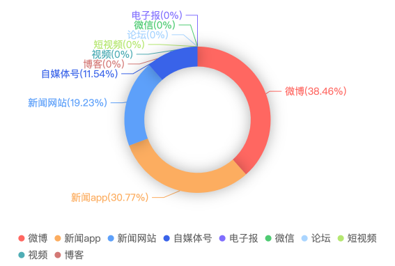 截至目前,该文章在互联网上传播总量共52篇。各信源的信息发布情况中,微博占比最高,其次是新闻app。(数据来源:新华睿思数据云图分析平台)