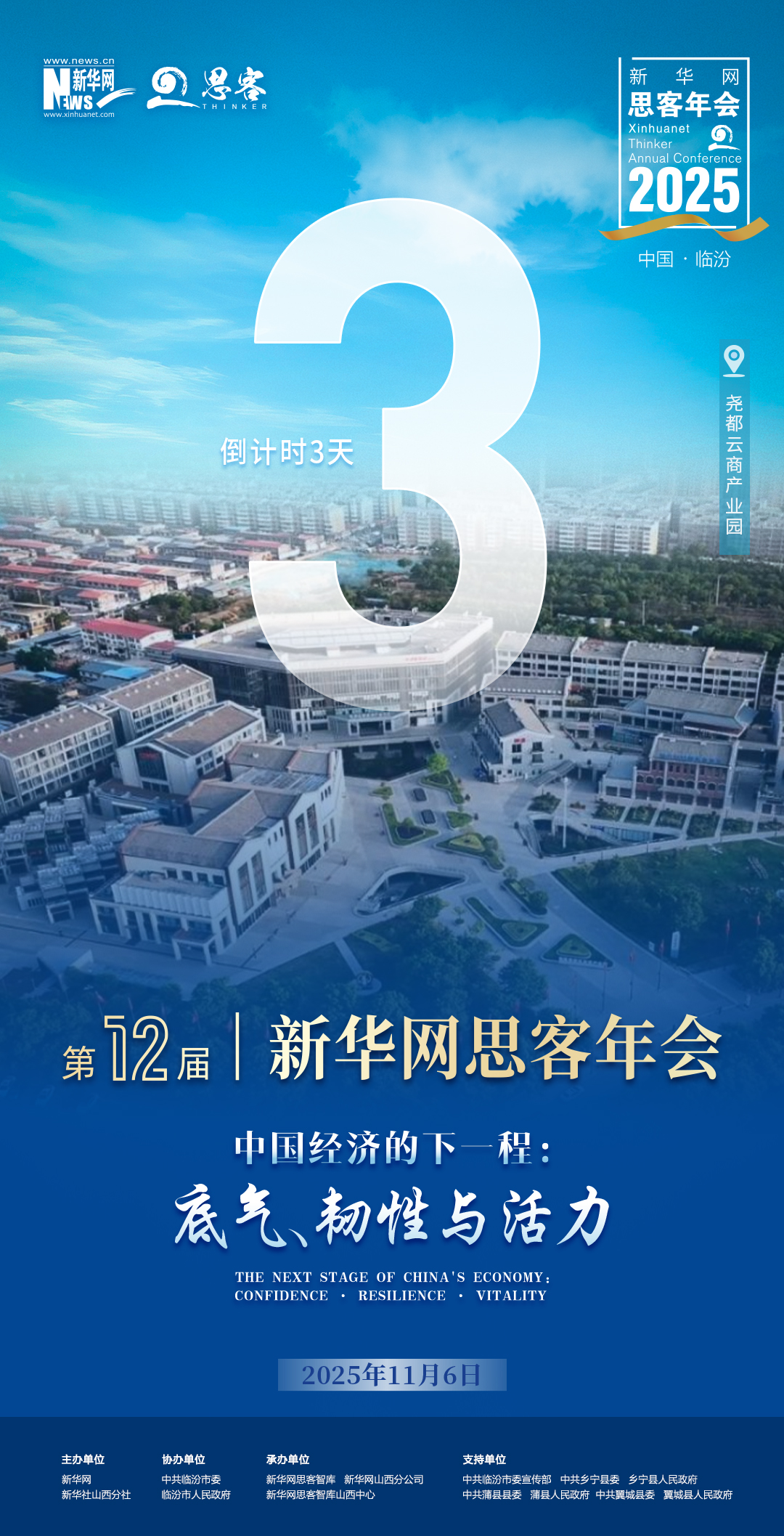 2025年11月6日,新华网思客年会将在山西省临汾市举行,主题为“中国经济的下一程——底气、韧性与活力”。