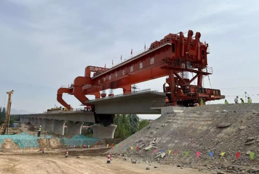 5月15日10时,随着最后一榀长32米、重约697吨的箱梁架设完成,雄忻高铁最长桥梁五台山机场特大桥箱梁架设任务全部完成。这是全线首个完成箱梁架设的特大桥,为线路按期贯通奠定坚实基础。(新华社记者许雄)