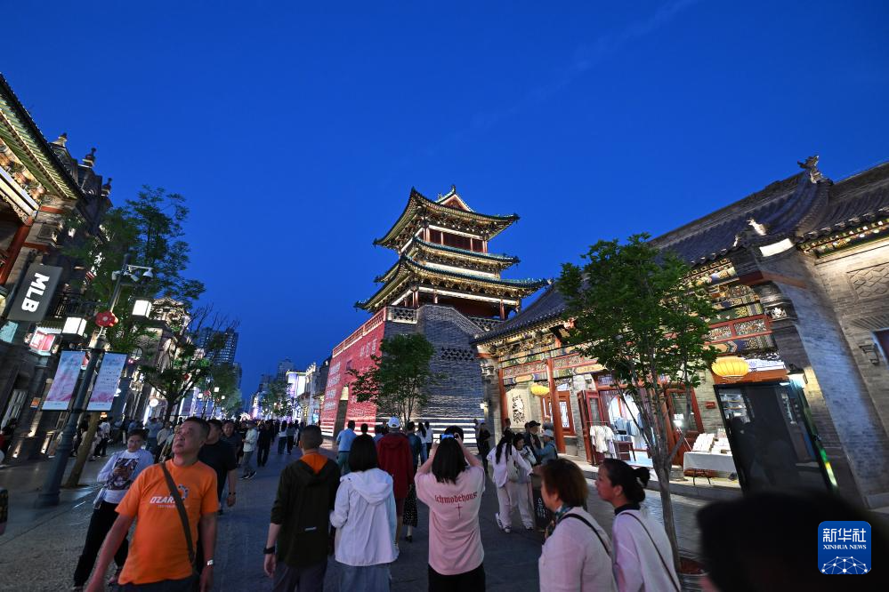 夜幕降临,太原市钟楼街、食品街等特色街区及汾河两岸流光溢彩、游人如织。近年来,太原市不断丰富夜经济消费业态,开展多种夜间活动,打造集美食、观光、购物等于一体的夜经济消费圈,丰富市民游客夜生活。(新华社记者詹彦)