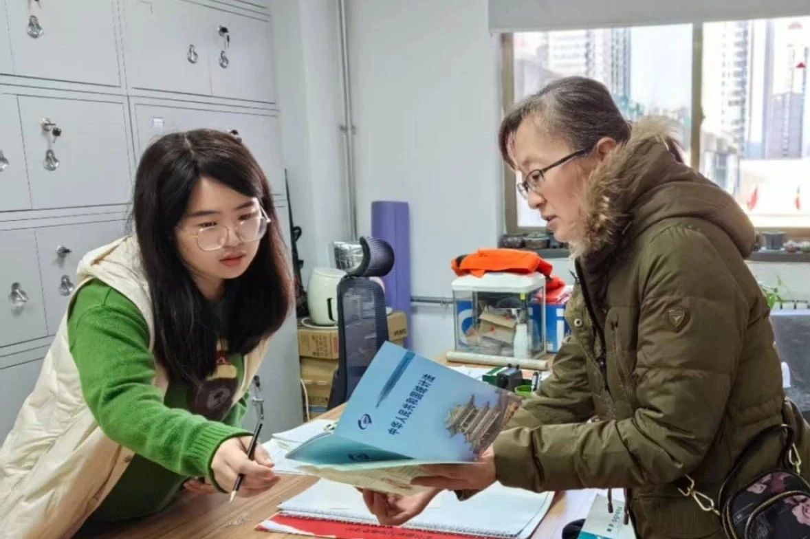 迎泽街道工作人员正在为居民提供服务。
