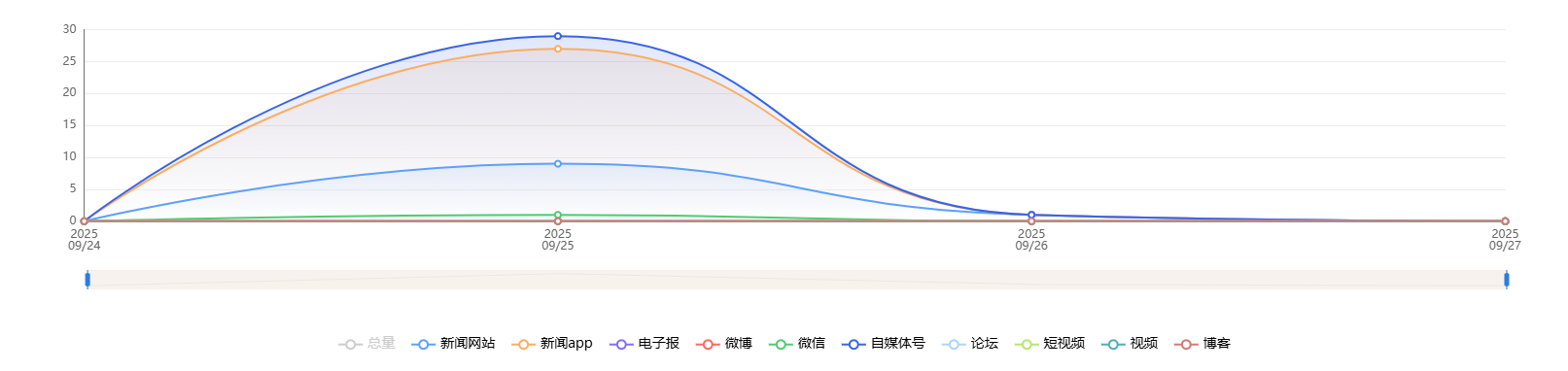 截至目前,该文章在互联网上传播总量共89篇。各信源的信息发布情况中,微博占比最大,其次是新闻app。(数据来源:新华睿思·数媒智慧分析平台)