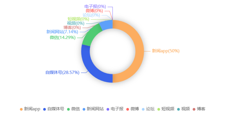 截至目前,该文章在互联网上传播总量共14篇。各信源的信息发布情况中,新闻app占比最大,其次是自媒体号。(数据来源:新华睿思·数媒智慧分析平台)