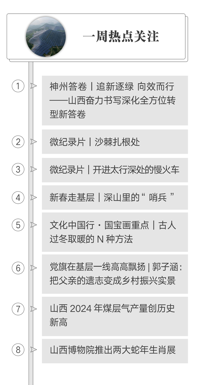 处在高质量发展的关键期、深化全方位转型窗口期的山西,处处涌现着勃勃生机。过去一年,山西经济运行整体向好,现代化产业体系加快构建,新旧动能持续转换,一批打基础、利长远的大事要事加快推进,高质量发展的步伐稳健而有力。(新华社记者赵东辉、梁晓飞、李紫薇、樊欣阳)