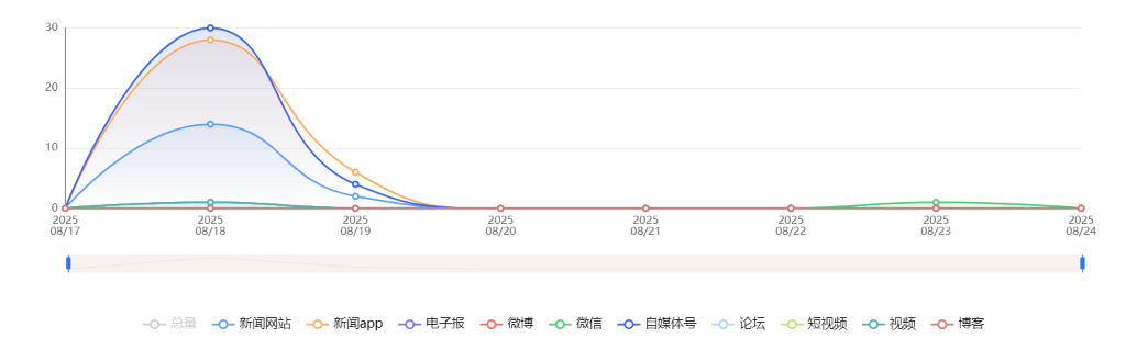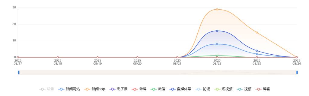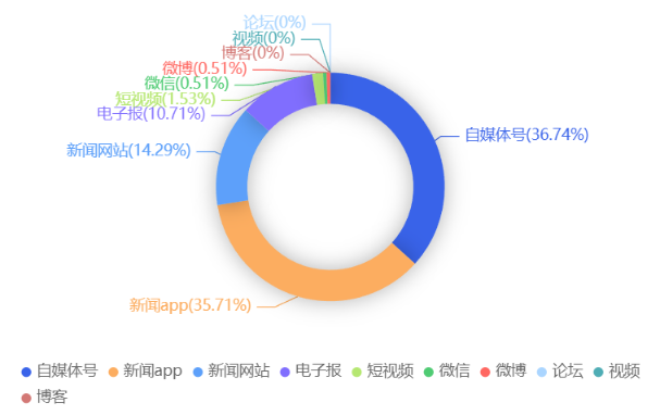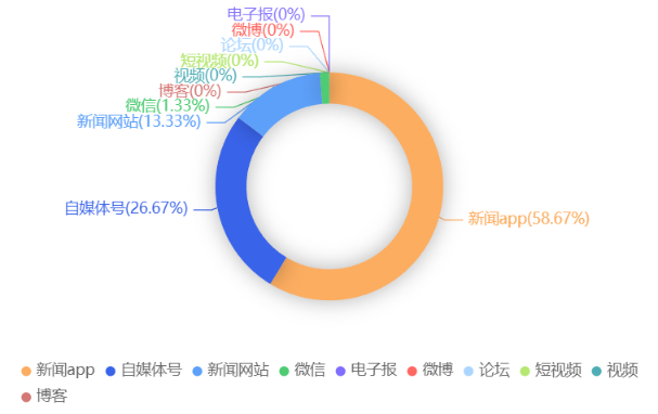 截至目前,该文章在互联网上传播总量共75篇。各信源的信息发布情况中,新闻app占比最高,其次是自媒体号。(数据来源:新华睿思数据云图分析平台)