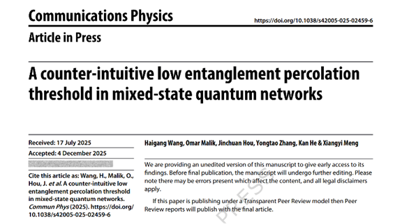 《通讯-物理》录用