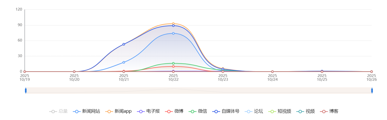 截至目前,该文章在互联网上传播总量共142篇。各信源的信息发布情况中,新闻app占比最高,其次是自媒体号。(数据来源:新华睿思数据云图分析平台)