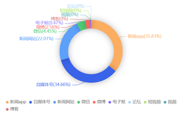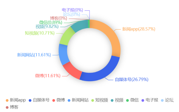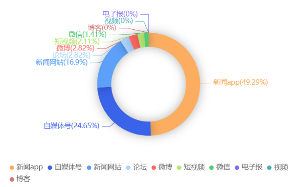 截至目前,该文章在互联网上传播总量共112篇。各信源的信息发布情况中,新闻app占比最高,其次是自媒体号。(数据来源:新华睿思数据云图分析平台)