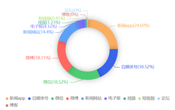 截至目前,该文章在互联网上传播总量共159篇。各信源的信息发布情况中,新闻app和自媒体号占比最高,其次是新闻网站。(数据来源:新华睿思数据云图分析平台)