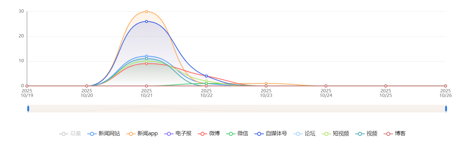 截至目前,该文章在互联网上传播总量共427篇。各信源的信息发布情况中,新闻app占比最高,其次是自媒体号。(数据来源:新华睿思数据云图分析平台)