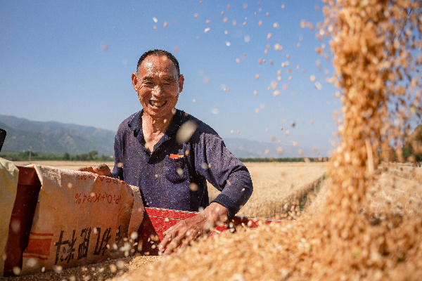 运城市盐湖区的小麦迎来丰收。新华网发(兰立强摄)