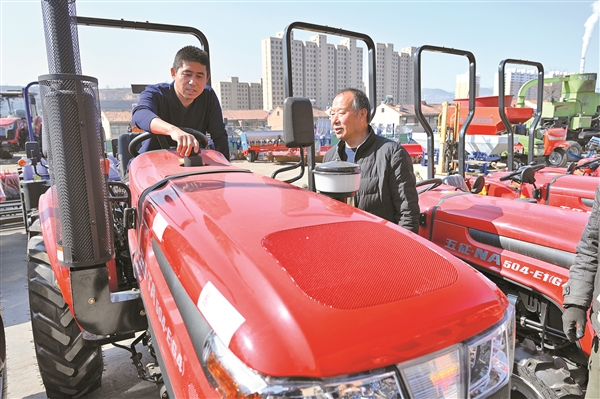 3月11日,左权县种粮大户在县农丰农机公司挑选拖拉机设备。随着气温回升,左权县春耕春播工作进入筹备阶段。为切实保障农业生产顺利推进,县农丰农机公司提早谋划、主动作为,提前储备并新购进一批高性能拖拉机、旋耕机、播种机等现代化农机具,从设备供应、技术指导到售后保障全链条发力,全力满足农村市场春耕生产需求,为全县粮食丰产丰收筑牢农机装备支撑。(刘永红 摄影报道)