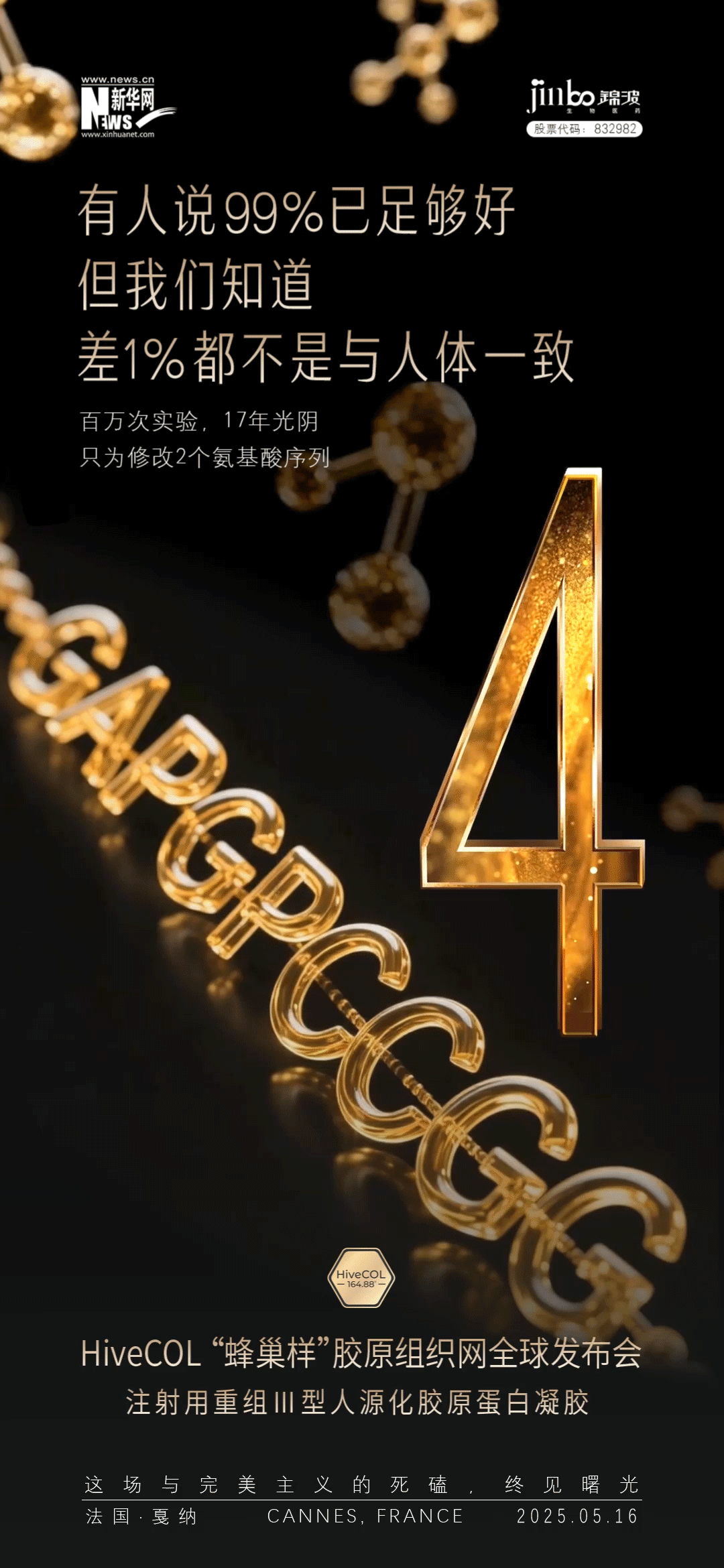 十余年来,锦波生物坚持原始创新,在人源化胶原蛋白领域持续深耕,实现多项关键性突破。5月16日,锦波生物将携中国原创重组人源化胶原蛋白新技术亮相法国戛纳,届时,让我们共同见证“全球新·中国造”的原创科技与电影、时尚共同闪耀戛纳之夜。