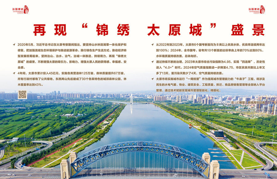深入学习贯彻习近平总书记对山西工作的重要讲话重要指示精神,太原市扎实践行习近平生态文明思想,认真落实总书记要求,着力全域治山、系统治水、强力治气、综合治城,统筹推动产业结构调整、污染治理、生态保护、城市治理等重点工作,正在走出一条生态修复与经济、民生互促共赢的发展之路。