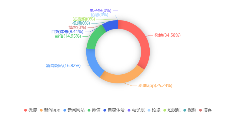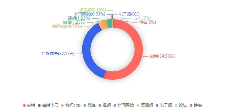 截至目前,该文章在互联网上传播总量共568篇。各信源的信息发布情况中,微博占比最大,其次是自媒体号。(数据来源:新华睿思·数媒智慧分析平台)