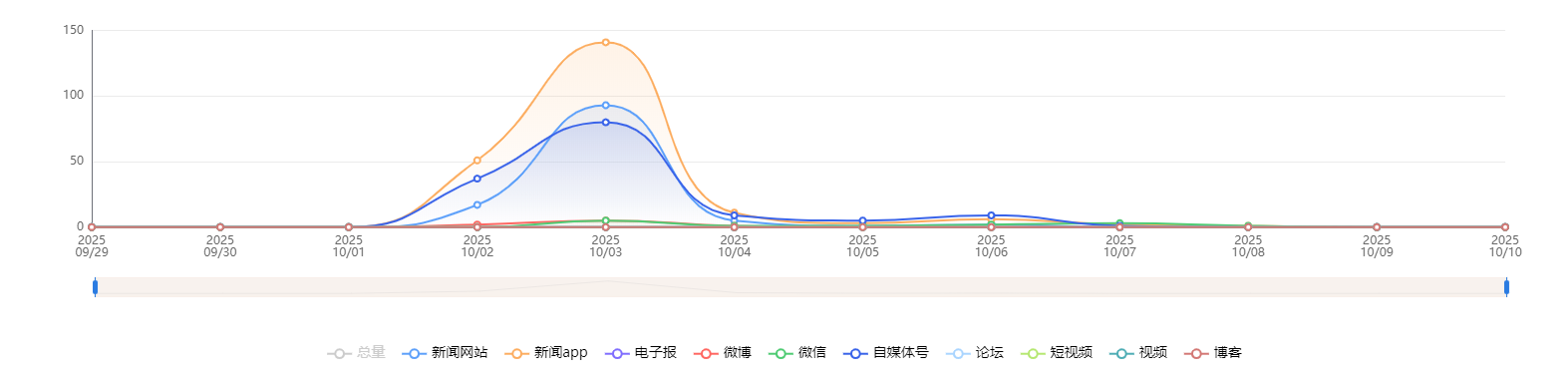 截至目前,该文章在互联网上传播总量共156篇。各信源的信息发布情况中,新闻app占比最大,其次是新闻网站。(数据来源:新华睿思·数媒智慧分析平台)