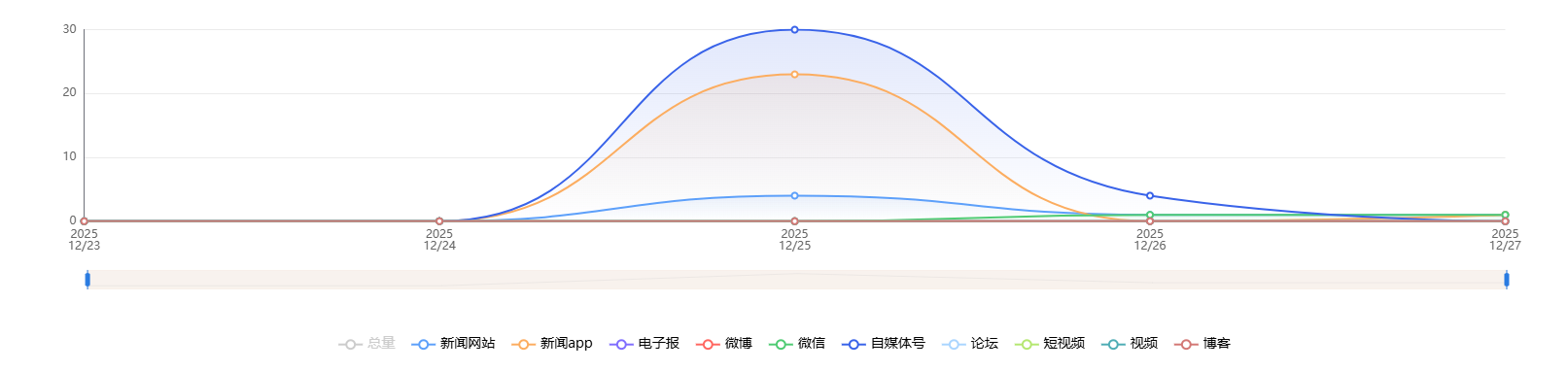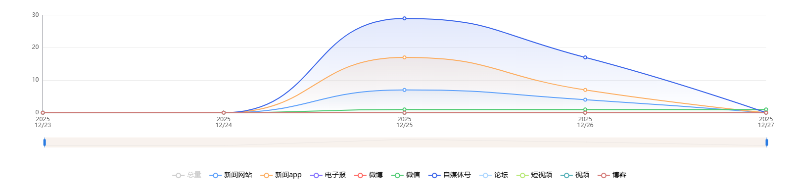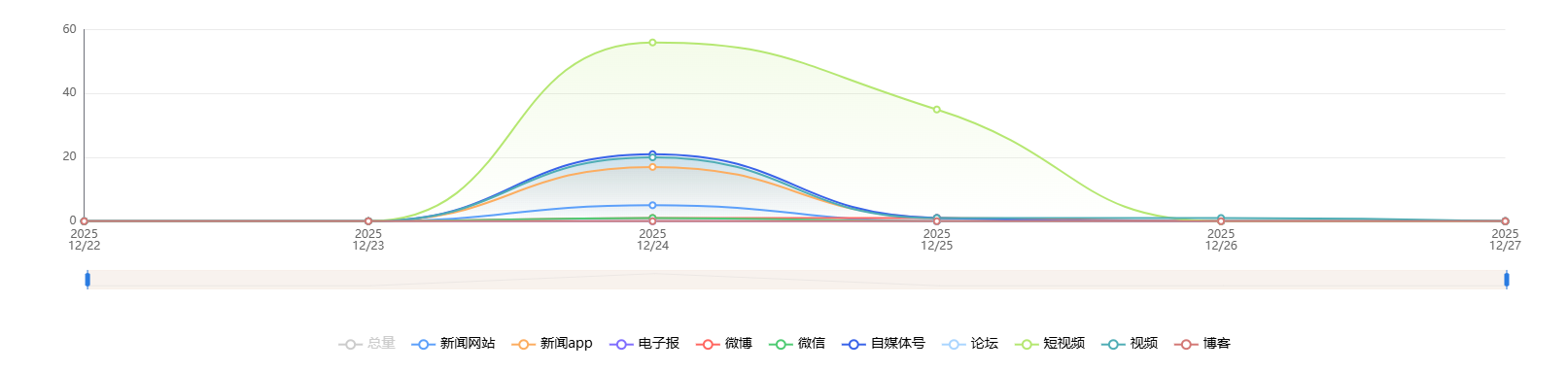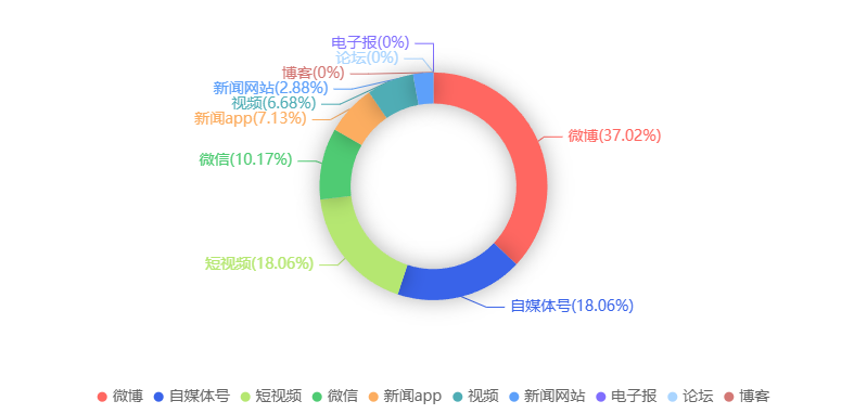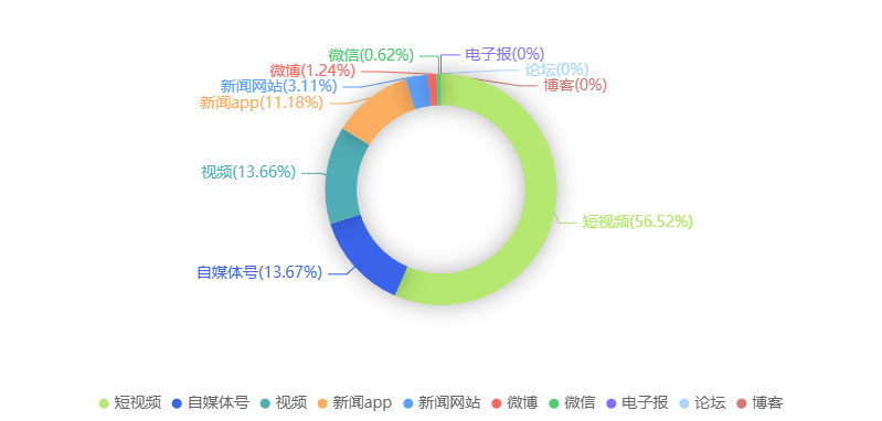 截至目前,该文章在互联网上传播总量共659篇。各信源的信息发布情况中,微博占比最大,其次是自媒体号和短视频。(数据来源:新华睿思·数媒智慧分析平台)