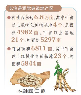长治是潞党参道地产区,种植面积达6.8万亩,其中千亩以上规模化种植基地4个、总面积4982亩,百亩以上基地21个、总面积5297亩。育苗面积6811亩,其中百亩以上规模化育苗基地23个、总面积5844亩。