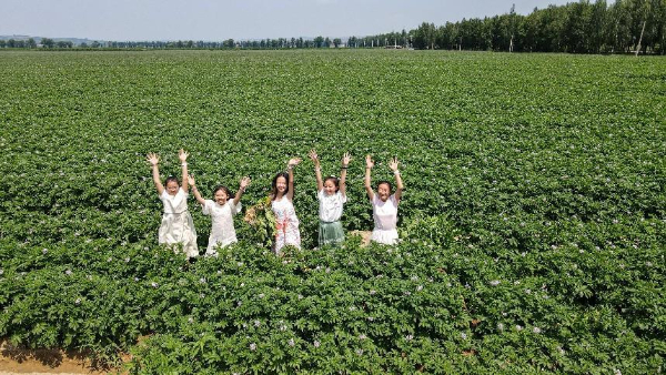 近日,忻州市五寨县八十里“丁”字平川的数万亩现代加工型马铃薯种植基地的土豆花迎来最佳观赏季,吸引游客来打卡。