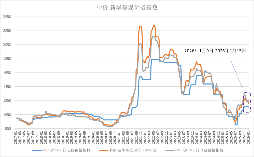 本期(2026年1月9日-2026年1月15日)中价·新华焦煤竞价价格指数反弹。