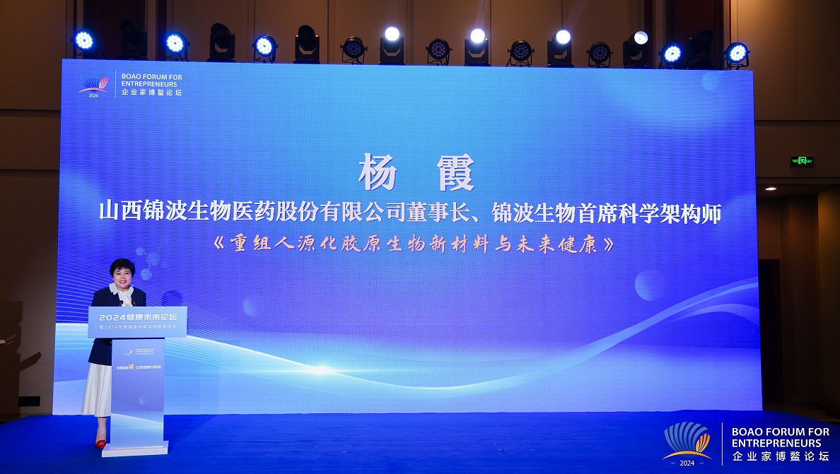 12月3日,由新华网主办的“创新稳‘健’众筑健康共同体——2024健康未来论坛”在海南博鳌举办。山西锦波生物医药股份有限公司董事长杨霞受邀出席,并围绕重组人源化胶原蛋白新材料的原始创新与产业化突破,分享了锦波生物的科技成果与发展经验。